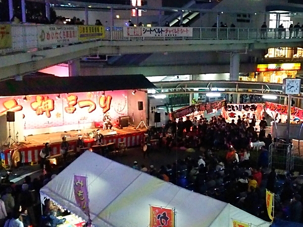 JR高槻駅北口から境内下までの参道筋約300mには露店が並ぶほか、同駅北側のロータリーに設けられる特設ステージでは、両日午前11時から、午後8時20分(26日は8時)まで、伝統芸能の伊勢大神楽のほか高槻太鼓、津軽三味線の演奏などが行われます。(高槻市HPより)